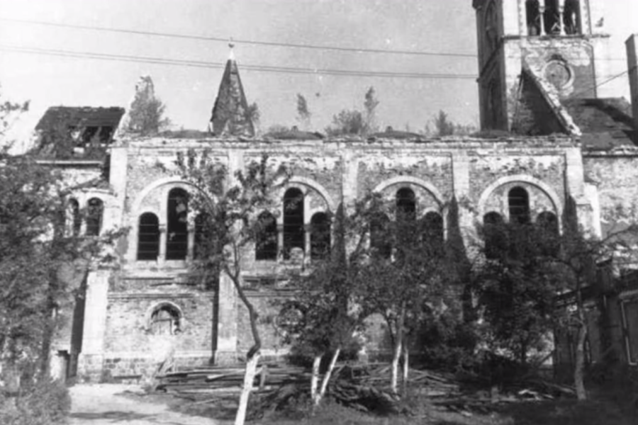«Смотрите, был момент, когда крыша была темной и само здание тоже. Обратите внимание, на фасаде был Христос. В кулуарных беседах мы говорили: утром шли, он там был, а вечером пришли — его там не было. Счистили лопатой безжалостно», — припомнил Сарниц, намекнув на возможное восстановление барельефа.