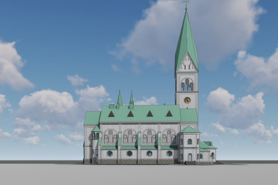 Архитектор признался, что до изучения истории объекта его устраивал цвет фасада, однако потом он решил, что кирха «сливается с небом».