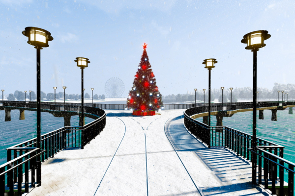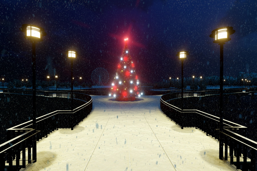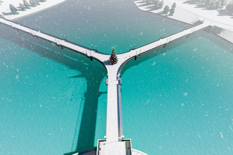 Пользуясь приближением новогодних праздников, Хорышев решил продемонстрировать слайды трехлучевого моста с елкой по центру.