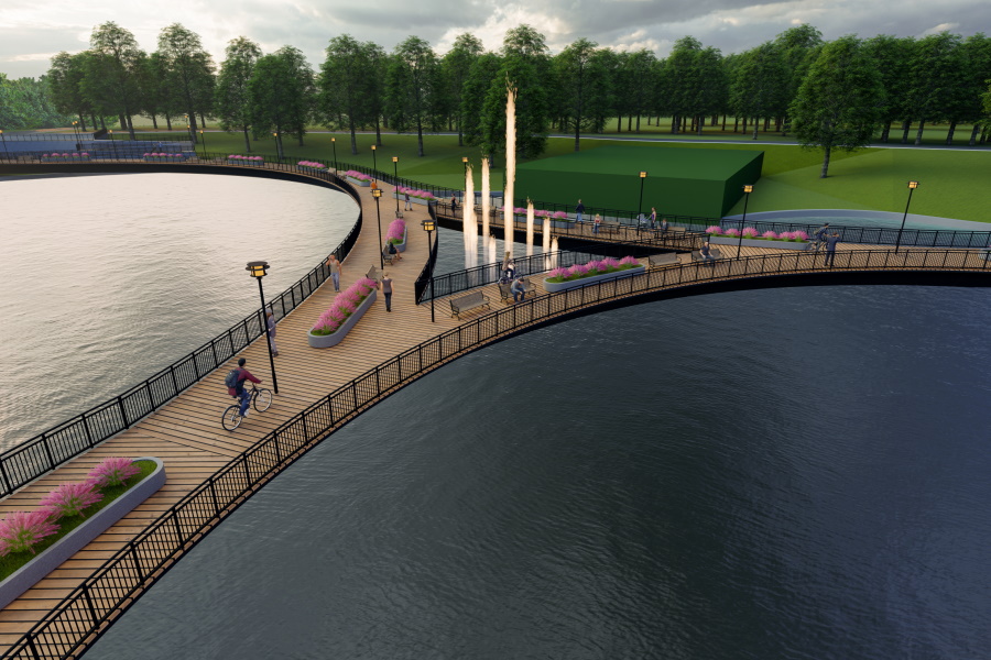 «Мы не сокращаем, а задаем озеру некую глубину, следующий уровень, — попытался объяснить задумку проектировщиков Анисимов. — Озеро — это не только вода, не просто объект, куда приходят рыбаки. В первую очередь это виды, это ландшафт. Когда мы находимся на берегах, мы видим только противоположный берег. Одним из самых крутых аттракций на большинстве городских озер является выход на гладь воды, перемещение ближе к центру».