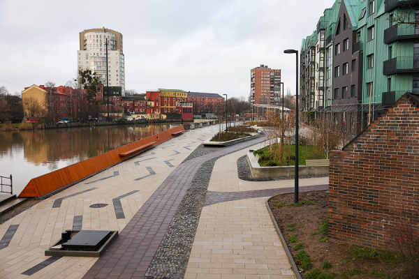 В Калининграде благоустроили новую набережную у жилого комплекса «Рыбная деревня-2» на острове Октябрьском. Обустройством занимался застройщик жилого комплекса — компания «Калининградский торгово-строительный холдинг» Александра Качановича. Набережную вымостили плиткой и брусчаткой, высадили деревья и кустарники, установили скамейки и малые архитектурные формы. Несмотря на то, что новый променад уже доступен для прогулок, полностью работы ещё не завершены, пояснили «Новому Калининграду» в «КТСХ».
