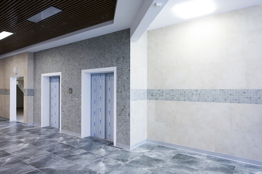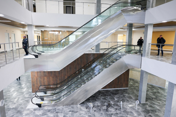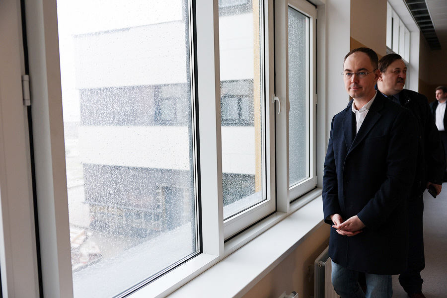 Также и со стороны внутреннего дворика фасад здания еще не везде закрыт навесными панелями. Дело в том, что некоторые из поступивших пачек со стройматериалами оказались с дефектами. Как отметил министр, поставщик выслал на замену необходимый объем панелей — груз уже в Санкт-Петербурге, и через два дня его намерены погрузить на паром. В течение двух недель подрядчик должен будет полностью завершить отделочные работы. «Если мы говорим про все конечные устройства, такие как оборудование Honeywell, система автоматизации, которая обеспечит там кондиционирование, вентиляцию, и так далее, сети все уложены, все проложено, испытано. Все индивидуальные испытания систем, которые необходимо было провести, на объекте провели», — подчеркнул он.