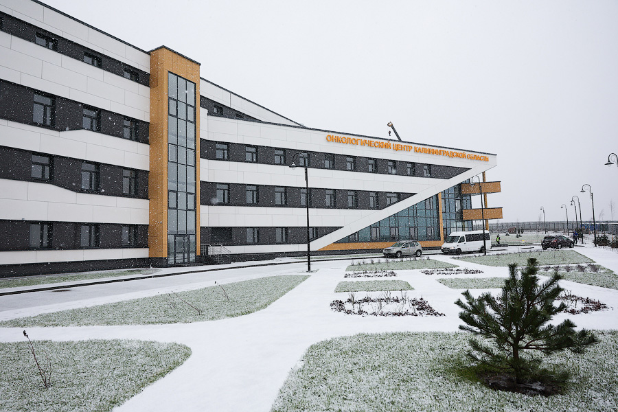 На сегодняшний день строящийся с ноября 2018 года Онкологический центр Калининградской области выглядит вполне готовым. Здание состоит из пяти этажей, рассчитано на 200 коек стационара, а его поликлиническое отделение — на 300 посещений в смену. Все палаты одноместные или двухместные. Каждый этаж оформлен в разных цветовых решениях и на каждом предусмотрена комната-буфет и стойка регистратуры.