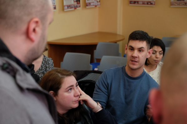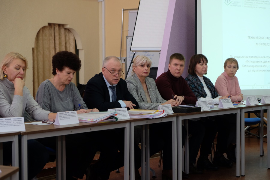 С самого начала заседания председатель комиссии Юрий Кондратьев, возглавляющий городское управление жилищного и коммунального хозяйства, очертил рамки обсуждения. Он дал понять жителям, что комиссия не будет решать старые проблемы дома (семейное общежитие и до пожара имело грустный вид), и что в ее компетенции только последствия пожара. Публике он предложил заслушать отчет двух экспертов. Первым стал гендиректор частной компании «ЭкспертПроектРеставрация» Иван Журавлев, а второй эксперт представлял Калининградскую службу заказчика (муниципальную структуру). Оба эксперта дали понять, что сейчас в доме проживать нельзя, однако восстановить его вполне реально, так как несущие конструкции пожар не повредил.