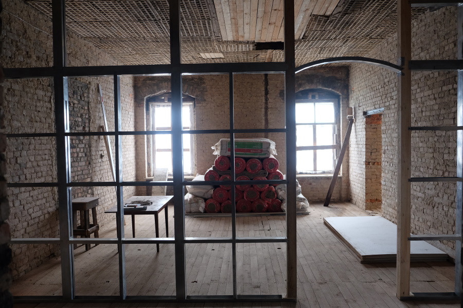 — Нет, на фальцевую. Вообще, разбирая завалы, мы находим куски сланцевой черепицы. Но восстанавливать такую же не хочу, потому что она тяжелая и стропильная система под нее специальная нужна. Мы решили поставить фальц. Это будет и красиво, и хорошо. Конечно, мы это здание уродовать не будем. Оно будет таким, каким было, в том же контуре. Внутри кое-какие изменения будут, но историческую планировку мы сохраняем.