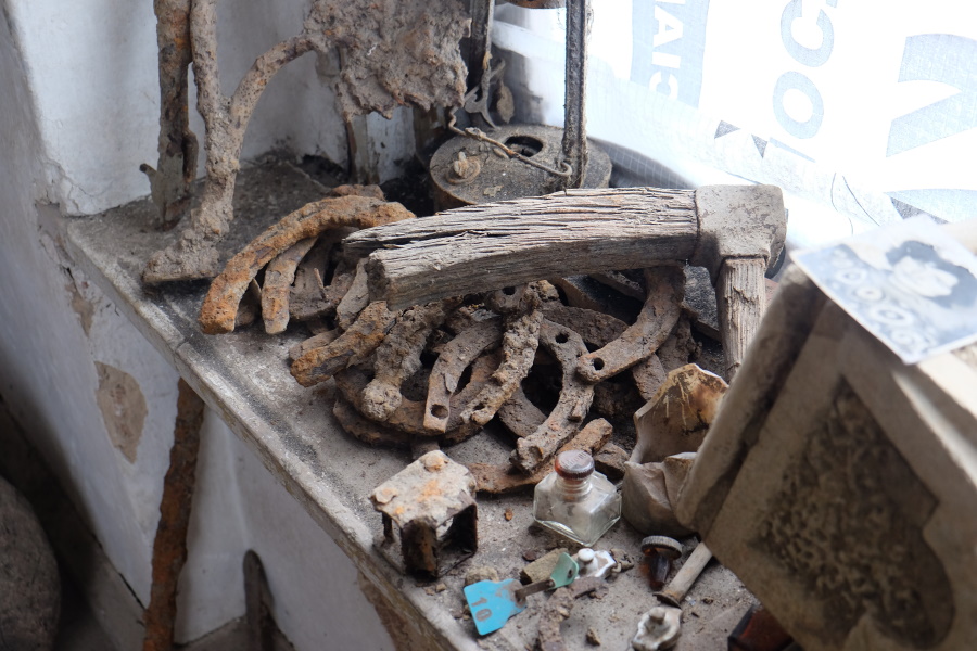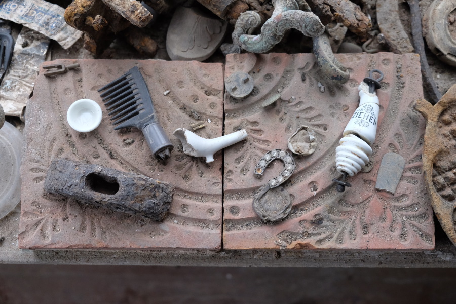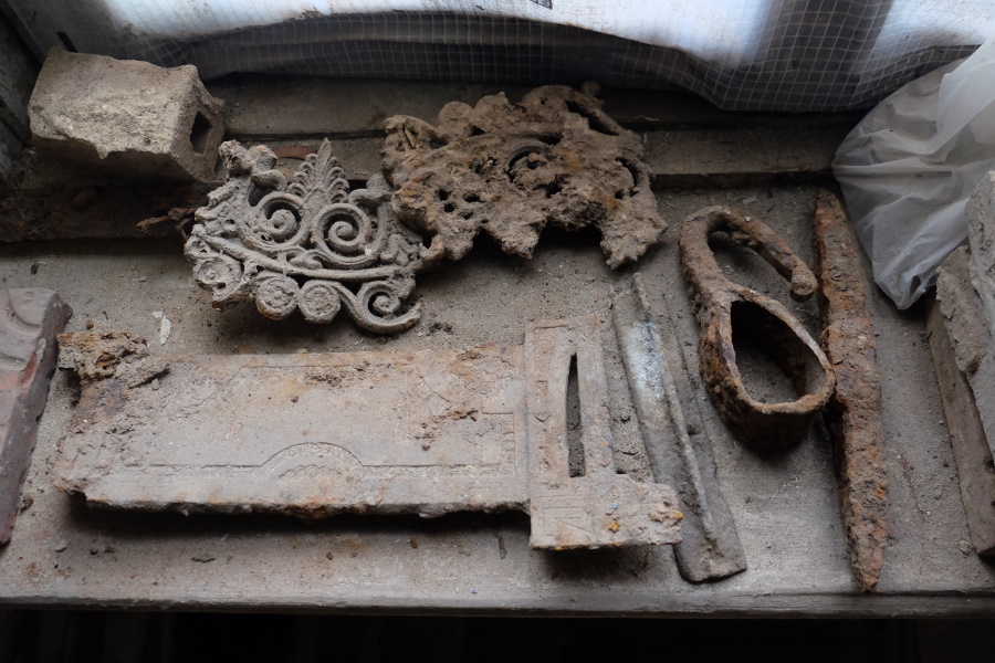 — Полностью заменены перекрытия между первым и вторым этажом, — припоминает Дмитрий. — Тут ведь был пожар, и с первого этажа было видно крышу. Постелили пол. Часть стен восстановили. Много работ выполнили в подвале. Оттуда вынесли очень много мусора. Практически вся дорога, которую мы отсыпали, из этого строительного мусора. Восстановили канализацию и водопровод. Когда мы начали восстанавливать канализацию, то нашли громадную кучу всяких довоенных кремов, мазей и тюбиков от зубной пасты. Сейчас у нас все это в музейчике лежит. Входную дверь поставили, штук 15 окон заменить успели, крыльцо восстановили. Окна, кстати, нынче не так дешевы. Подлатали крышу немного. Камин немецкий, что в подвале, восстановили. В помещении под студию практически ремонт закончили.