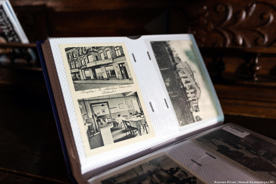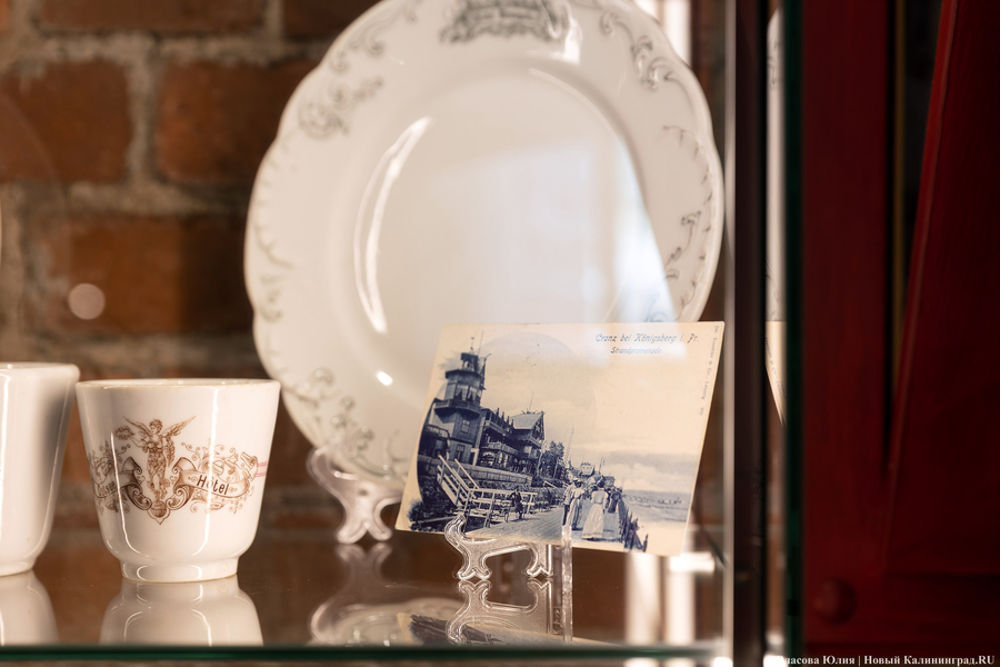 «Коллекция собиралась больше двадцати лет, — говорит Николай. — Естественно, все предметы приобретались в разных местах. Примерно 50 процентов на территории области собрал по объявлениям, а остальное — на аукционах покупал. В основном на eBay. Если говорить об открытках, то почти все они оттуда. Эти открытки часто во время путешествий рассылали, поэтому они оказались по всему миру. Если говорить о других предметах, то их могли забрать во время переселения на другую территорию, а посуду могли просто на память прихватить. Это было в порядке вещей. Брендированные чашки или тарелки часто похищали из кафе как сувенир. Если взять к примеру посуду из Кранца (сегодня Зеленоградск — прим. „Нового Калининграда“), то ее сейчас по всей области можно найти: в Черняховске ее много находят и вообще на востоке региона. Вещи из Кенигсберга, например, из театра Луизы (сегодня Калининградский драмтеатр — прим. „Нового Калининграда“), можно спокойно найти на побережье. Люди прихватывали все это, как сегодняшние туристы полотенца из гостиниц берут на память. В этом плане все одинаковые — и русские, и немцы».
