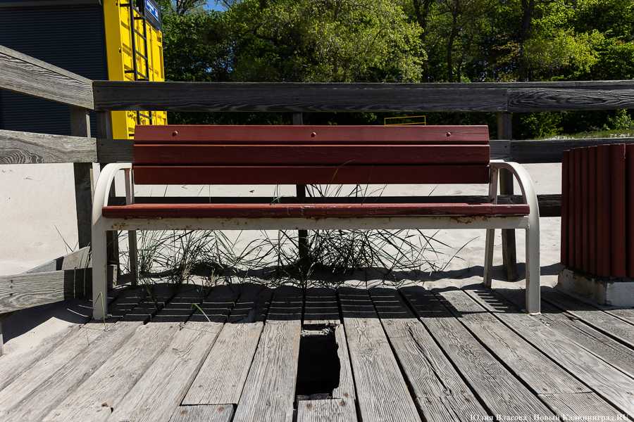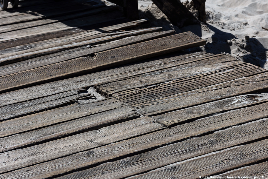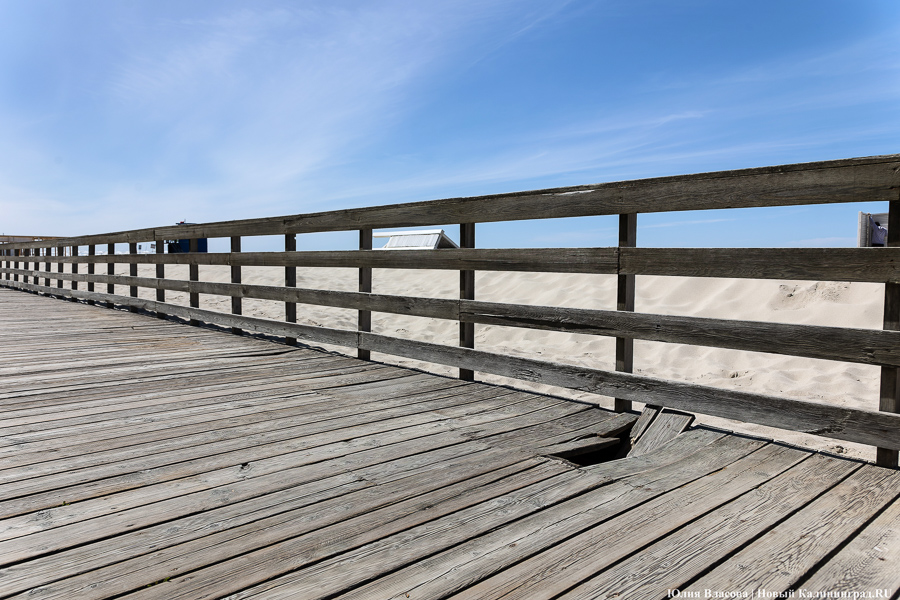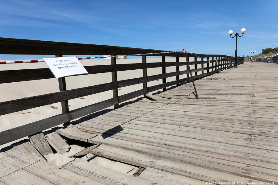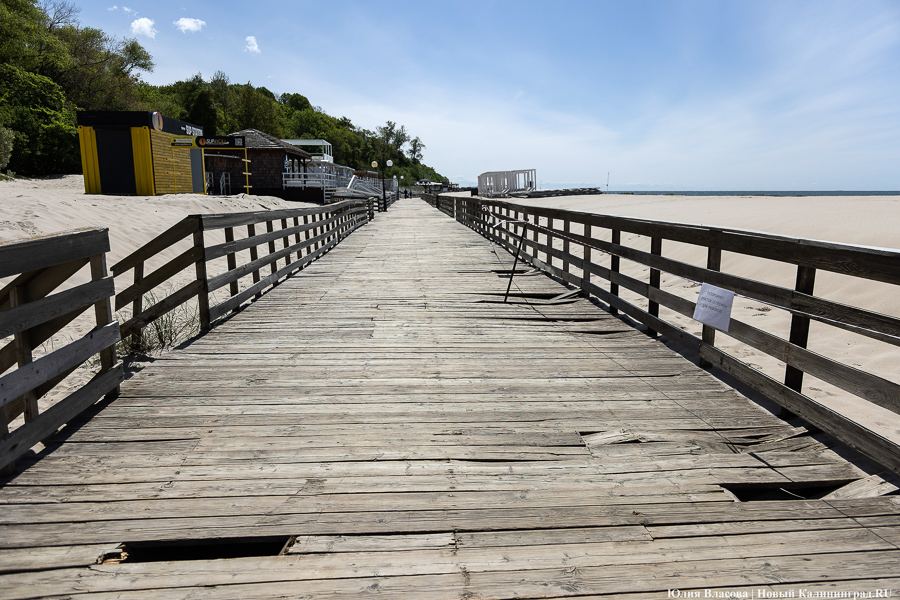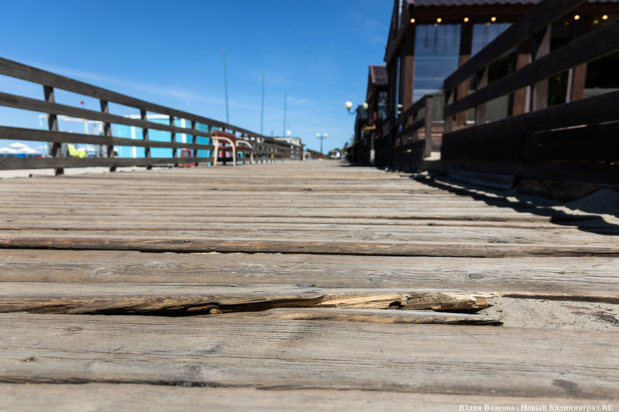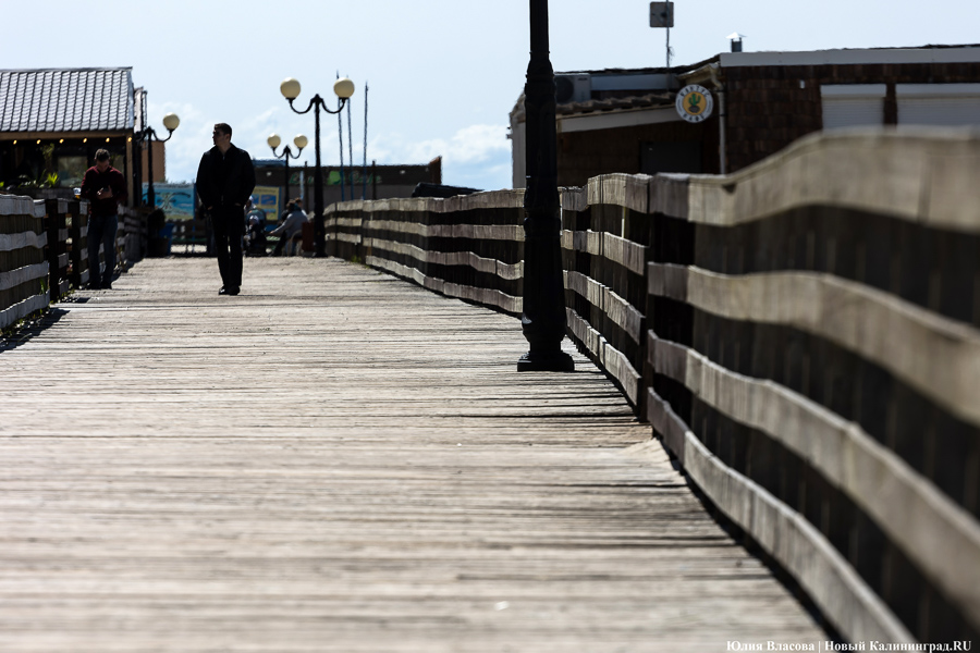 Променад в Янтарном перед началом туристического сезона представляет собой печальное зрелище: расшатанные доски, торчащие гвозди, выщербленные перила — а местами просто дыры в настиле. Даже при самом благоприятном раскладе все лето на нем будут идти работы, при неблагоприятном — они «уйдут» в осень, а часть сооружения в целях безопасности опять придется перекрывать. В любом случае все это означает, что флёр Янтарного как места для «элегантного» отдыха, который ему долго пытались придать, сильно поблекнет.