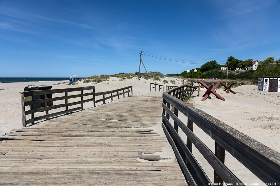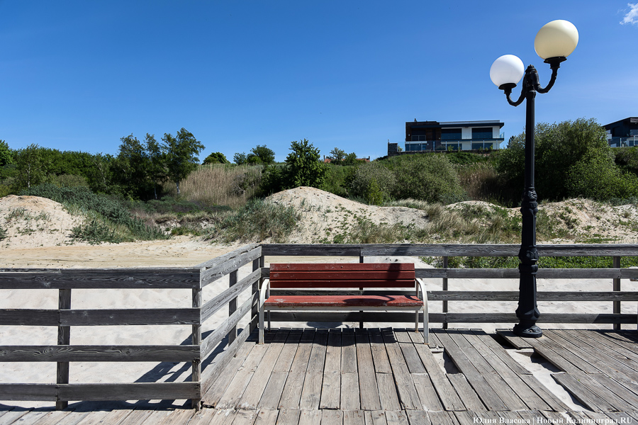 Деревянный променад в Янтарном длиной 2 км построили в 2014 году за 44 млн рублей по программе Приграничного сотрудничества, которая финансировалась большей частью Евросоюзом. Из-за ошибки проектировщиков проблемы у променада возникали с самого начала: он оказался слишком низким и штормовыми зимами постоянно заносился песком. До такой степени, что местным властям приходилось искать конструкцию по GPS-координатам: сверху образовывались дюны в метр высотой.