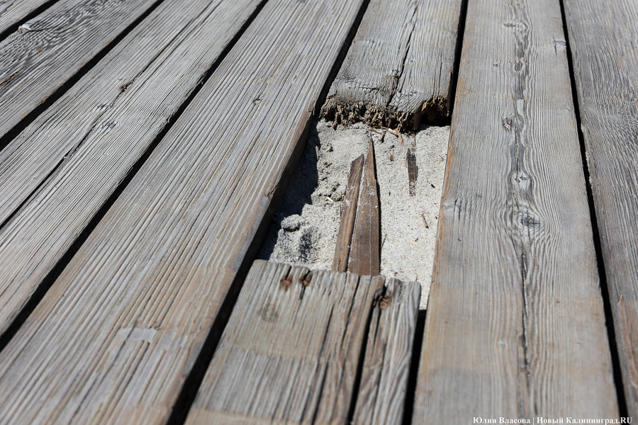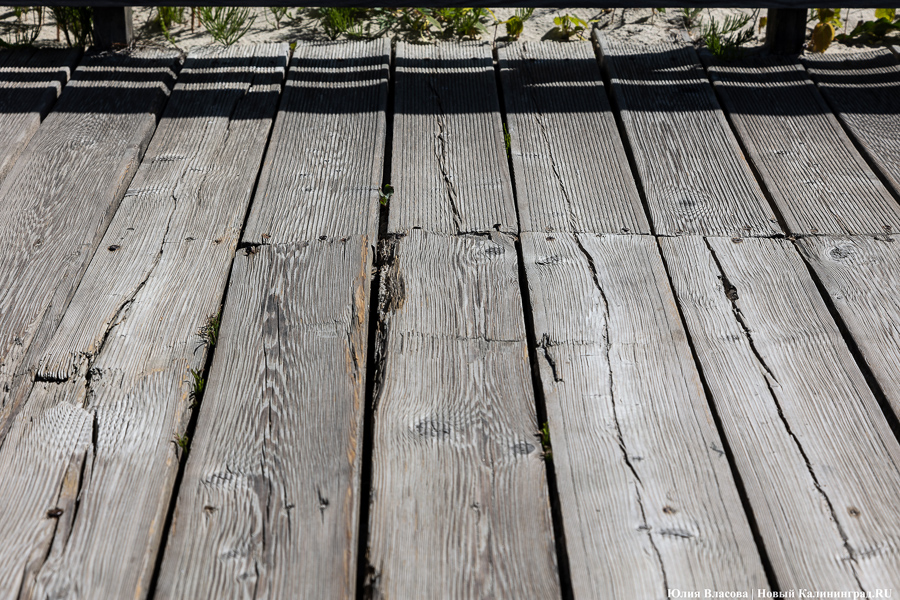 Все это не могло не сказаться на состоянии дерева, которое к началу 2020-х начало рассыпаться: два года назад гулявшие там калининградцы описывали увиденное словами «великая депрессия». Нельзя сказать, чтобы местные власти ничего не делали: в прошлом году там отремонтировали 800-метровую «водную» часть и, по словам директора Центра комплексного развития туризма Янтарного Дениса Ефремченко, сразу же обратились в областное правительство за деньгами на дальнейшие работы. Регион смог дать 16 млн, еще 8 млн пришлось наскребать; составили смету и еще в феврале отправили на утверждение в областной центр по проведению торгов, тот неоднократно предъявлял претензии, пересчитал ее, снизив до 17,5 млн — пока суд да дело, подкралось лето.