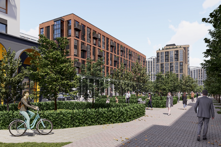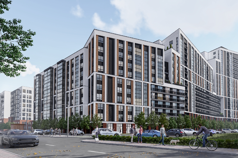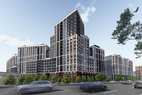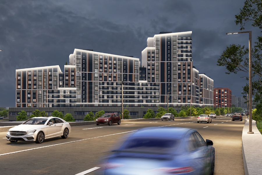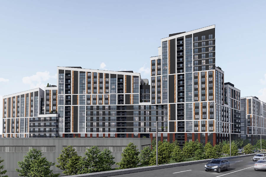 На этот раз концепция практически не вызвала претензий у членов совета. В частности, внутри комплекса появился пешеходный бульвар со сквером, детскими площадками, сухим фонтаном и кафе, а самая «проблемная» часть застройки, примыкающая к эстакадному мосту, была полностью переработана. Корпус первого квартала, выходящего на бульвар, теперь снижен до 8 этажей, второй квартал повышает этажность до 11-13 этажей, а доминантой становится 19-этажное здание.