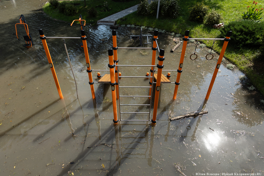 Фотокорреспондент «Нового Калининграда» Юлия Власова побывала на месте ЧП и убедилась, что стадион «Красная звезда» сейчас больше подходит для занятий водным поло, чем футболом.