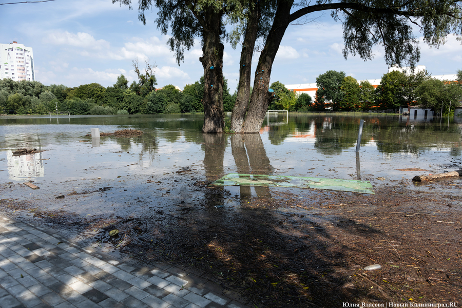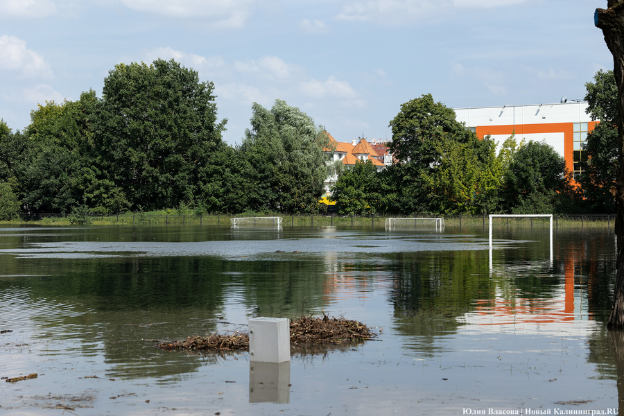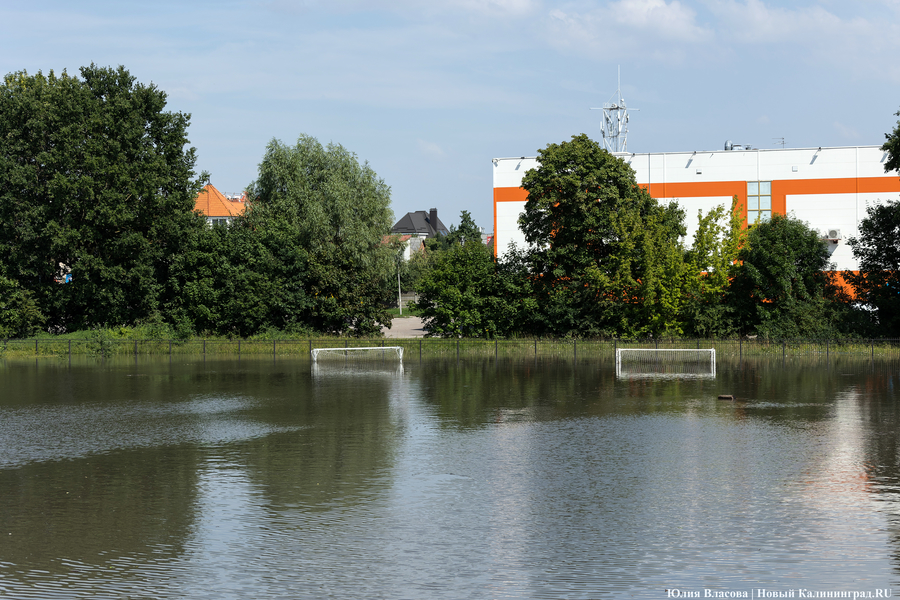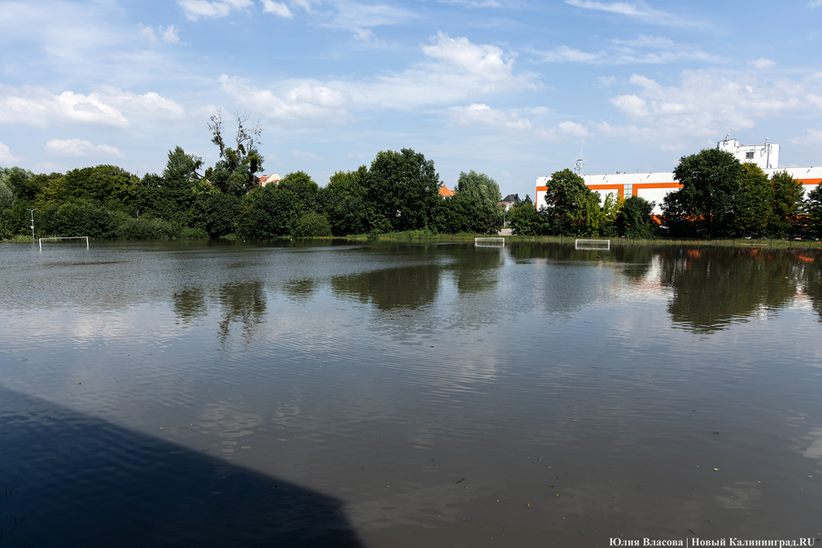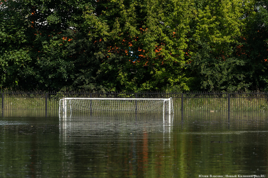 На Калининграде после ливня затопило стадион «Красная звезда» на Московском проспекте.