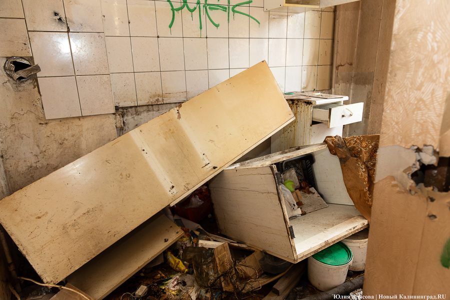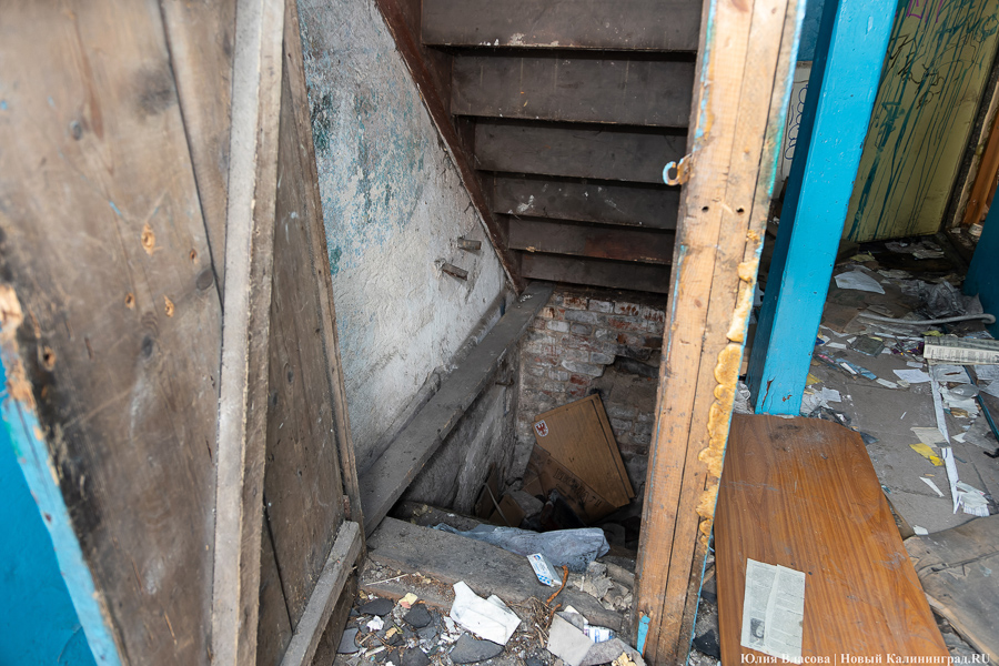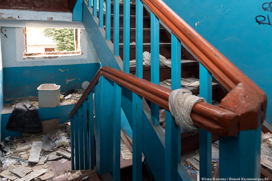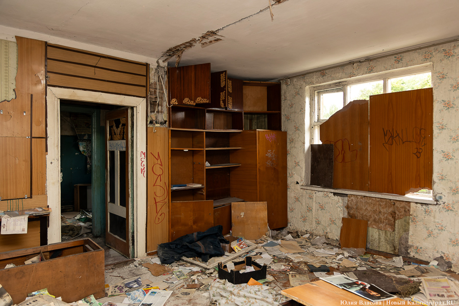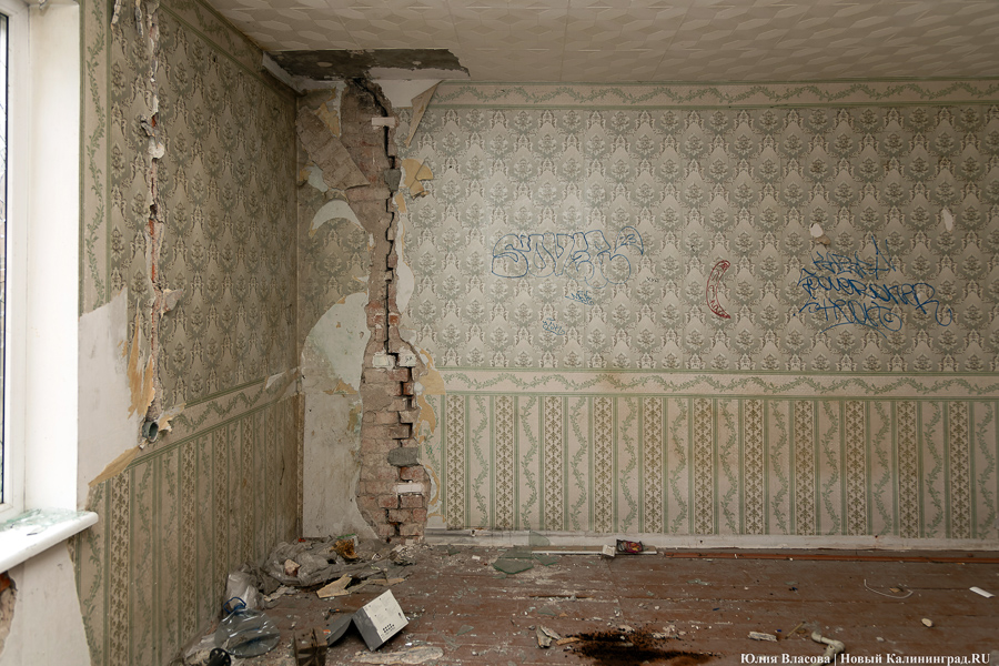 Дом до момента сноса должны были законсервировать, но этого по каким-то причинам не произошло: «Когда почти всех выселили, здесь стал происходить кошмар. Начиная от бабушки, которая идет и выкапывает цветочек или кустик. Люди еще, когда тут оставались жить, говорили: „Ну что ж вы делаете, я их сама растила вот с такого маленького“, а в ответ: „Все, ваш дом аварийный, идите отсюда!“. Вот представляете, это порядочные люди, нормальные, хорошие так делают. А что думают бомжи? А что думают дети, которым за счастье полазить, окна побить. Поэтому здесь такое стало твориться. Понятно, что и за железом тоже сразу пошли. Приезжали и за какими-то книжками, мебелью, все это тащили», — показывает на разруху наш собеседник.