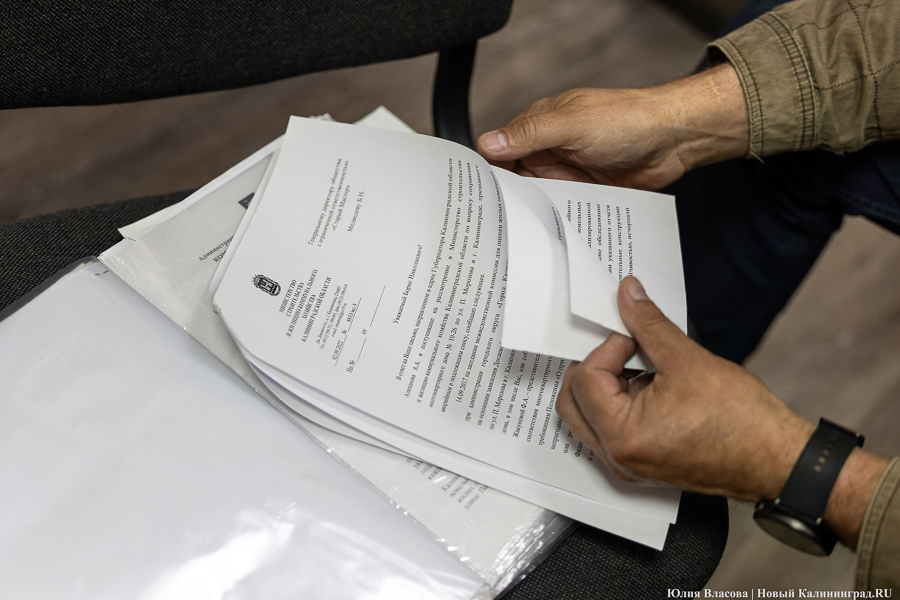Он открывает пухлую папку со свидетельствами обширной переписки. С главой администрации Калининграда Еленой Дятловой, начальником управления учета и найма жилья Еленой Палкиной, начальником управления имущественных отношений Вадимом Маштаковым, бывшим главой Евгением Любивым, депутатом городского совета Олегом Быковым, губернатором Антоном Алихановым, областным министром строительства и ЖКХ Сергеем Черномазом, главой региональной Службы охраны памятников Евгением Масловым. В последнем случае — безуспешно пытался признать разрушающийся дом и остатки «единственной в Калининграде немецкой пекарни» объектом культурного наследия. Писал не только он, но и люди, которые хотели как-то сохранить любимое кафе — они (более 400 человек) подписались под обращением.