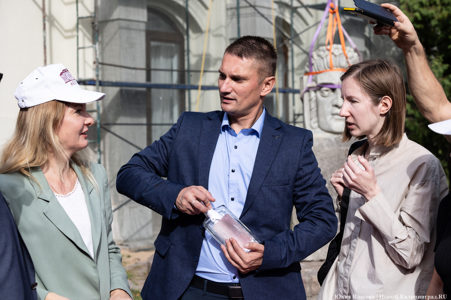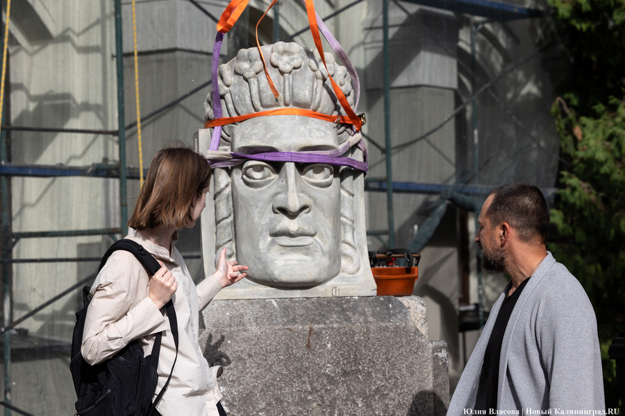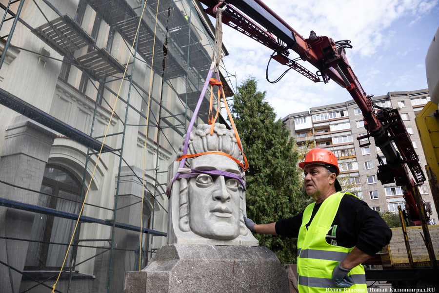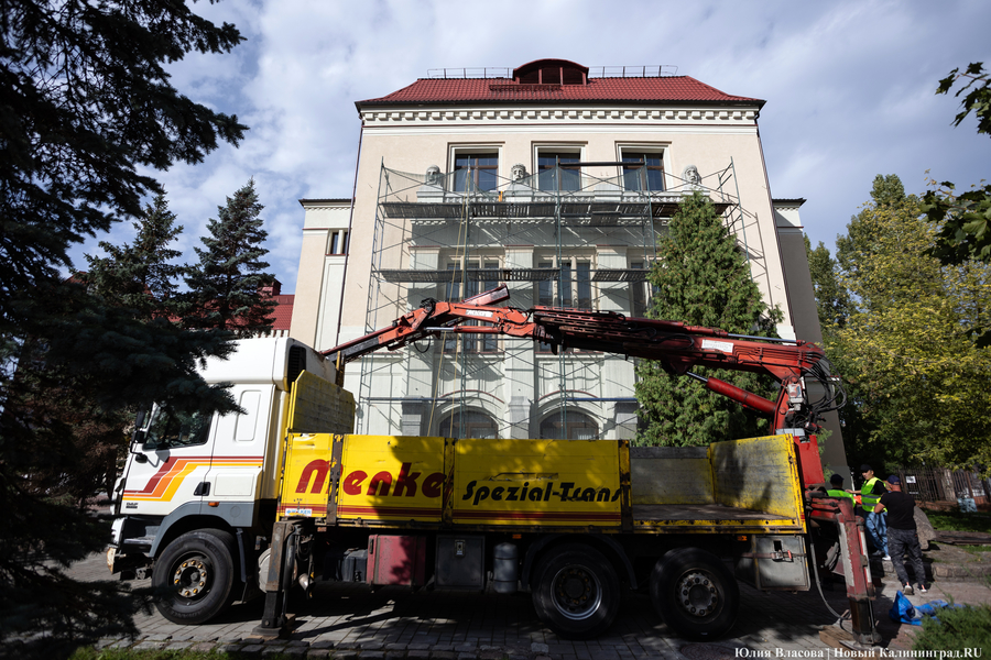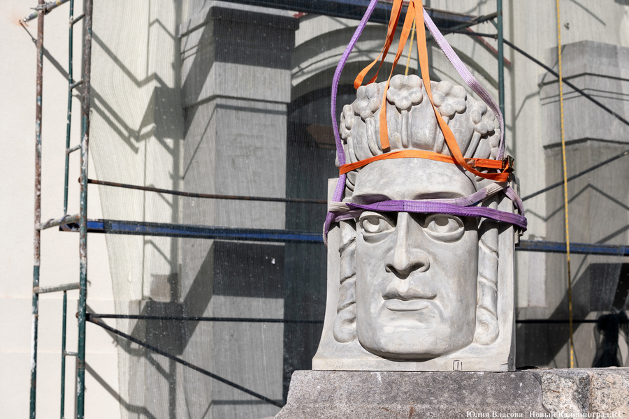 На фасаде Историко-художественного музея в Калининграде установили маску «Созерцание». Это одна из четырех восстановленных «поющих» скульптур бывшего Штадтхалле (концертного зала). Мероприятие прошло во вторник, 3 октября.