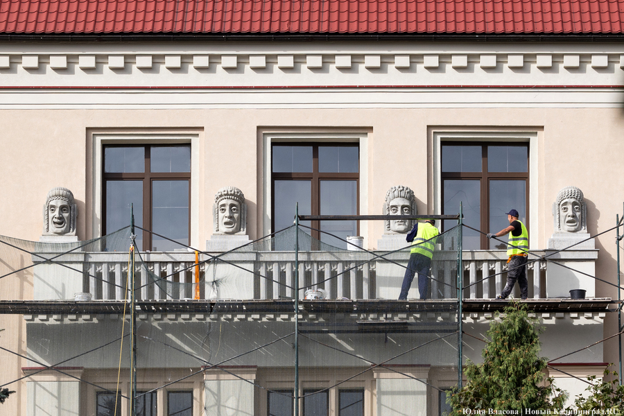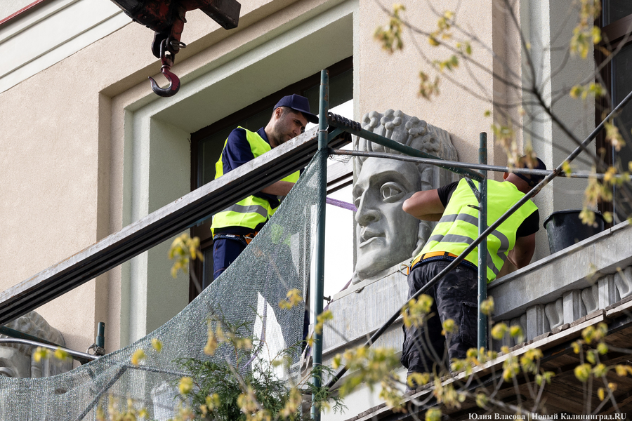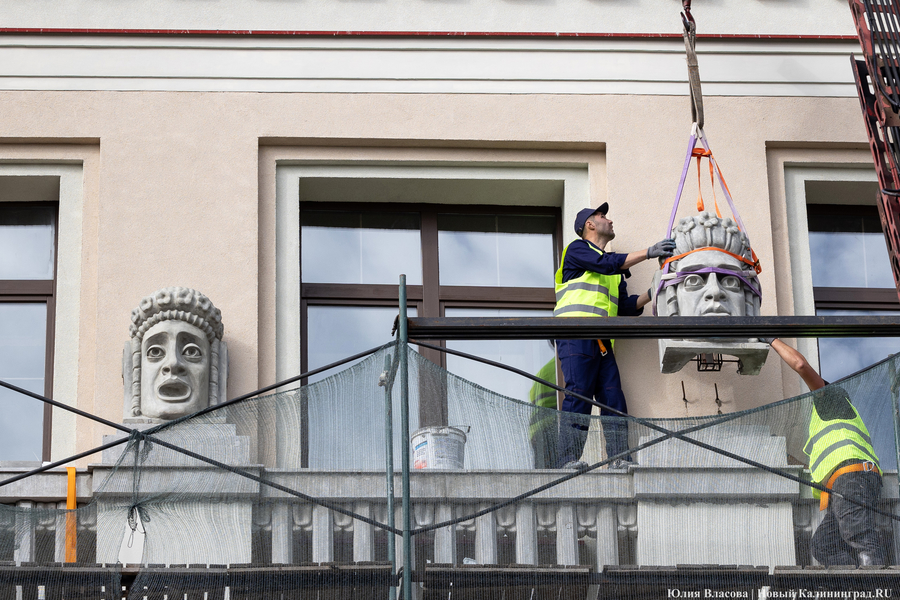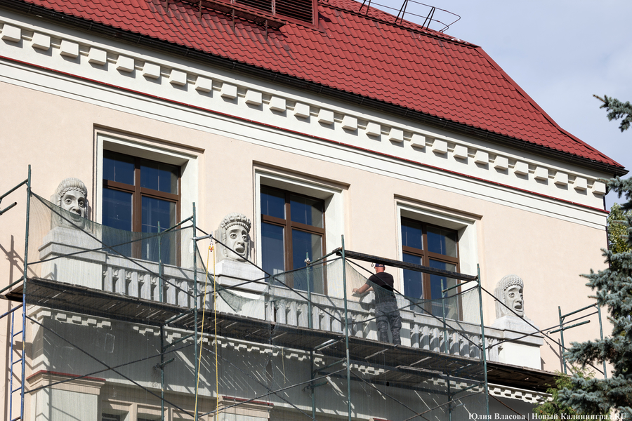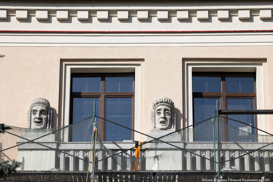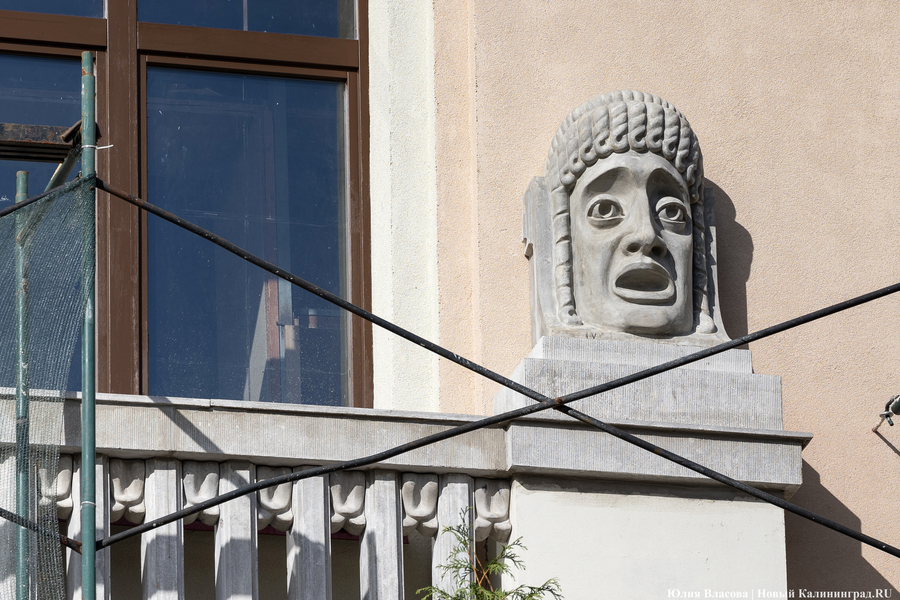 «Рельефные маски, символизировавшие различные направления изящных искусств (комедия, трагедия, поэзия и музыка), были созданы немецким скульптором Лотаром Зауэром в 1912 году и утрачены во время Второй мировой войны. Мастерская „Архитектурные формы“ и реставратор Андрей Кунац восстановили скульптуры по оригинальным историческим фотографиям довоенного периода», — пояснили в музее.