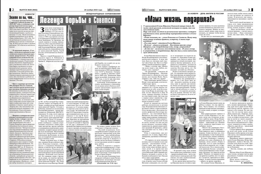 «Вот уже скоро год, как коллектив редакции живет в неопределенности, будет ли жить „Вестник“? В январе текущего года главным редакторам муниципальных газет сообщили о предстоящей реорганизации и посоветовали оптимизировать свои затраты — сократить технический персонал. У нас сокращать некого. В редакции трудятся 4 человека — главный редактор, дизайнер-верстальщик и два корреспондента. Выпускаем газету дважды в неделю — во вторник с обязательным приложением „Официальный вестник“, в котором публикуются документы администрации и окружного Совета депутатов, и в пятницу — по типу „еженедельника“», — сообщила главный редактор газеты «Вестник» (Советск) Валентина Данченко. Тираж ее издания — 700 экземпляров.