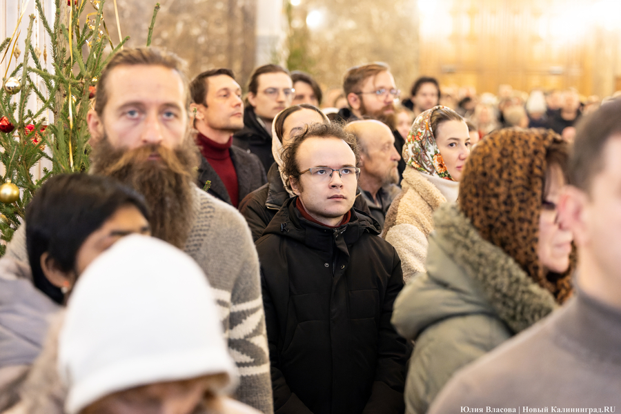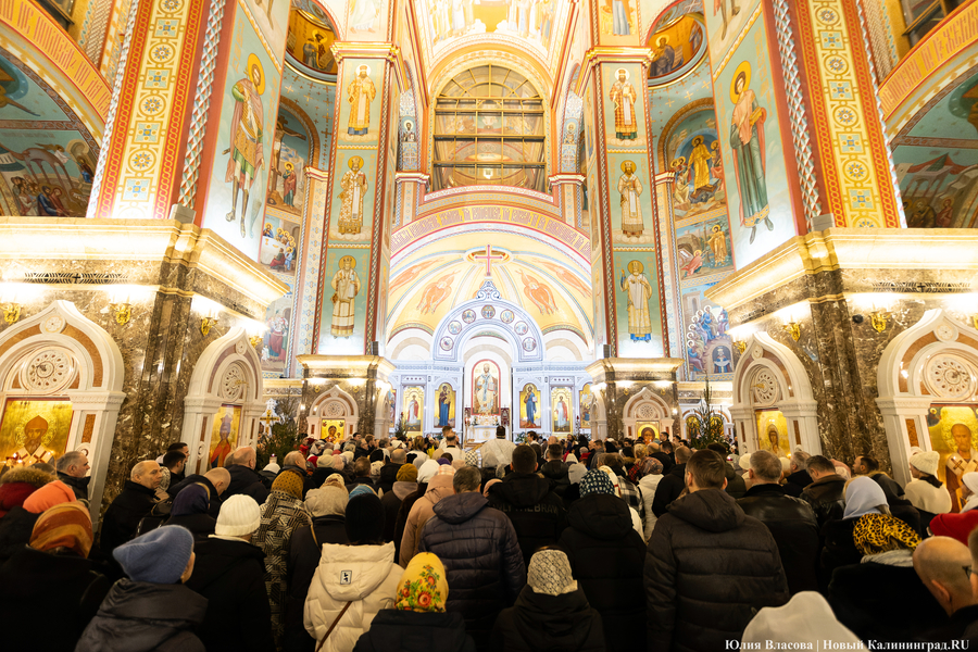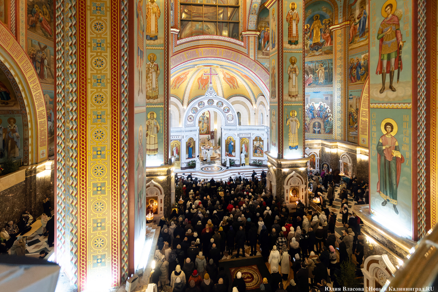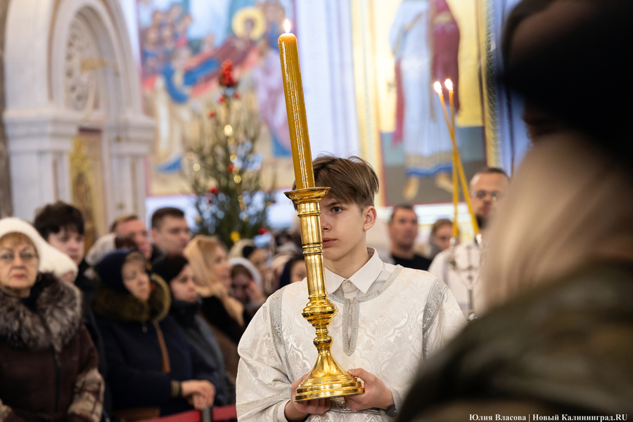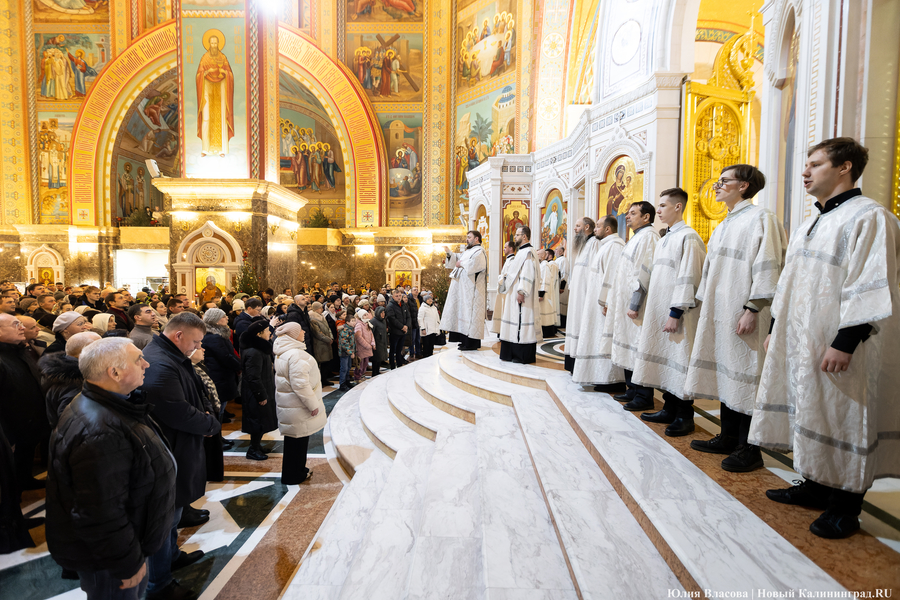В ночь с 6 на 7 января в храмах Калининградской области прошли рождественские богослужения. Главная литургия традиционно состоялась в Кафедральном соборе Христа Спасителя на площади Победы.