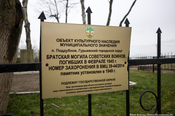 Журналисты «Нового Калининграда» съездили в Поддубное и своими глазами убедились, что до процветания поселку действительно далеко. Будущая дорога к переулку, которую когда-нибудь, возможно, построят местные власти, — пока что заросшее травой поле, размеченное вешками. В переулке стоят столбы без фонарей, дренажные канавы отсутствуют. Особо впечатлила территория около братской могилы — та самая, перегороженная блоками. Буквально в метрах от объекта культурного наследия — грязь, хлам, пустые бутылки из-под алкоголя.