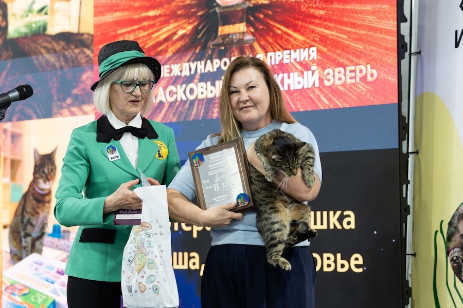 Котошеф Зеленоградска Светлана Логунова и руководитель Елизаветинского детского хосписа Ольга Хозяинова с кошкой Пилюшей