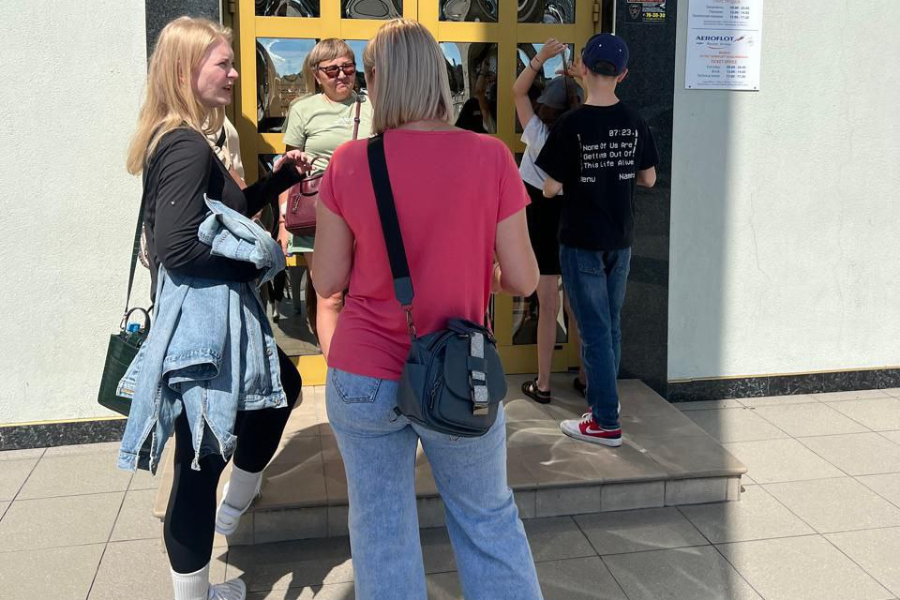 «Там стоят люди, которые делают списки. Это делают сами люди [те, кто пришёл оплачивать перелёт]. Женщина, которая вот сейчас стояла, — это уже была четвертая, которой передали списки. Я говорю: „Вы со скольких тут стоите?“ Она мне: „Я с одиннадцати утра здесь стою“. Я снова спрашиваю: „А зачем вы тут стоите?“ „Ну, мне же тоже нужно туда попасть, вот я и стою“, — ответила мне она. Самоорганизуется народ», — рассказал очевидец.