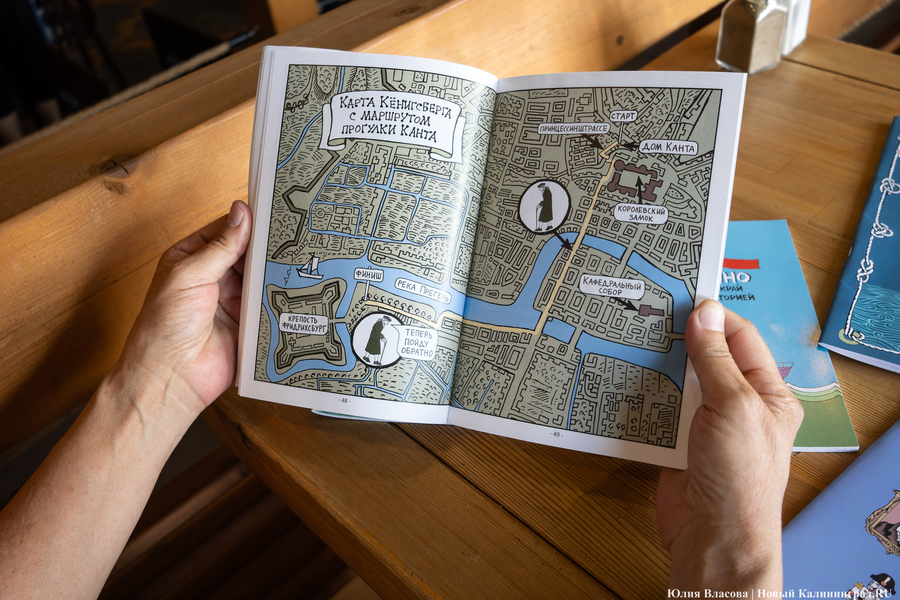 В целом же меня при создании этой книжки консультировала Нина Дмитриева, моя однофамилица, мы потом выяснили, что наши крестьянские предки из соседних губерний (Нина Дмитриева — доктор философских наук, научный руководитель «Академии Кантиана» БФУ им. И. Канта, профессор кафедры философии института социально-гуманитарного образования МПГУ, иностранный член-корреспондент Австрийской академии наук, главный редактор журнала «Кантовский сборник» — прим. «Нового Калининграда»). Кстати, она была идейным вдохновителем «Кантовского конгресса». Если бы не она, то, конечно... Просто неоценимую помощь она оказала, потому что некоторые формулировки, которые сначала я рисовала, она проверяла, обращалась к первоисточнику, переводила, присылала мне перевод. В качестве редактора объясняла, почему именно так, а не иначе будет лучше сказать, точнее. Я, конечно, очень ей благодарна за эту помощь, потому что без неё точно этот роман в таком объёме не состоялся бы.