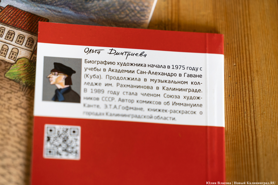 Художница Ольга Дмитриева хорошо известна в Калининграде и за его пределами — она автор серии книжек про историю Калининграда, Кёнигсберга, комиксов про философа Иммануила Канта, писателя Эрнста Теодора Амадея Гофмана. Её работы можно увидеть в Музее изобразительных искусств, а в середине июня в музее состоялась презентация её нового графического романа «Кант. Жизнь и суждения». «Новый Калининград» поговорил с Ольгой о том, почему она решила изобразить биографию великого философа в виде комиксов, о новых книгах про поселок Заливино и Куршский залив, а также о судьбе художника и многом другом.