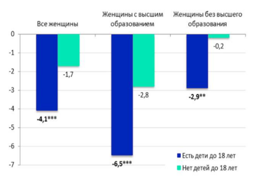 «Штраф» — это разница в уровнях заработной платы у женщин с детьми и бездетных женщин, которая не объясняется другими социально-демографическими характеристиками. Простыми словами, это явление, когда женщине не хватает денег из-за рождения ребёнка. По словам Митрофановой, «штраф» остаётся на «нормальном» уровне, поскольку в России существует такая мера поддержки, как материнский капитал.