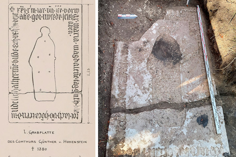 Калининградский историк и специалист по Ордену Александр Казённов (он также автор статьи «Надгробия и места погребения магистров и членов Немецкого ордена» — прим. «Нового Калининграда») сообщил «Новому Калининграду», что всего известны две дожившие до нашего надгробные плиты комтуров Тевтонского ордена. Одна из них — это находка археологов, о которой сообщил Константин Скворцов, а вторая — плита великого комтура Тевтонского ордена Куно фон Либенштайна.