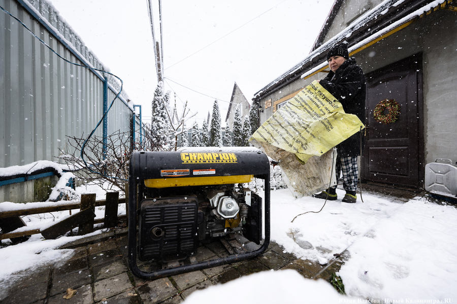 «Мне дача досталась по наследству, и пока мы не можем купить себе квартиру, обустроили жизнь здесь, — рассказала нам во время местного блэкаута жительница Серафима. — Дома — годовалый ребёнок и бабушке 74 года. Пока не было света, срочно пришлось закупить за 27 тысяч самый дешевый генератор и каждый день ездить на заправку за канистрой бензина, чтобы отапливаться. Электричество расходовали по минимуму, давали отдыхать генератору, но все равно в день нагорало на 700-900 рублей. При этом обратиться в „Янтарьэнерго“ для оперативной ликвидации аварии мы не можем — сети принадлежат обществу, как и подстанция, и дачники должны ремонтировать их за свой счет».