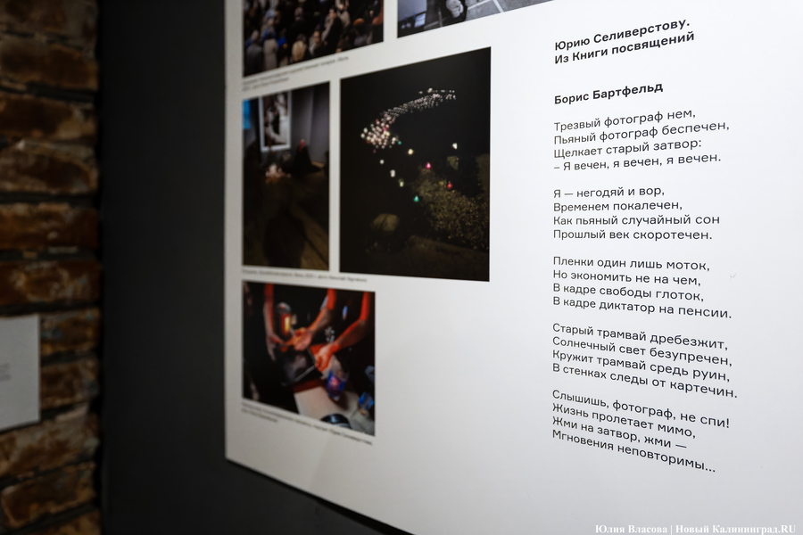 С момента ухода председателя правления Калининградского союза фотохудожников прошло почти десять лет. Коллеги Юрия, которым удалось сохранить площадку в арт-пространстве «Ворота» на Литовском валу, организовали выставку (0+), посвящённую его последнему 15-летию. По замыслу организаторов, это не просто дань памяти, а диалог с художником, который продолжается через его работы.