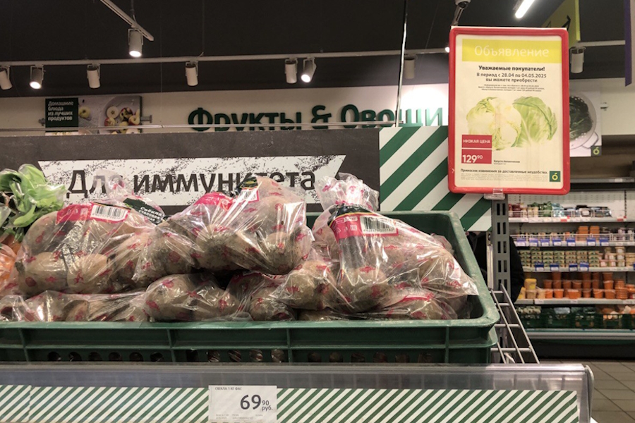 Одним из главных продуктовых «антигероев» месяца стал картофель, подорожавший ещё на 20-40 рублей, независимо от качества. Упорно стремится к «сотке» и лук (+16-35 рублей). Капуста этот барьер уже преодолела в двух сетях из трёх. Самая дорогая белокочанная сейчас в «Виктории» — 129,90 за килограмм, однако, в магазине, несмотря на подорожание в 60 рублей, специальный ценник гласит «Низкая цена». При этом в буклете товар был размещён со стоимостью 69,3 рубля. Руководству сети пришлось разместить объявление с актуальной ценой и извинениями «за доставленные неудобства».