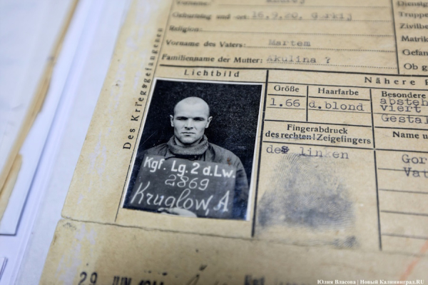 Родственников военнопленного Андрея Круглова искали пять лет. Варвара Егорова, начальник отдела научной информации и публикации документов Государственного архива Калининградской области, рассказывает «Новому Калининграду»: «Мы искали его близких в Нижегородской области — на Родине Андрея Мартемьяновича (адрес был указан в учётной карточке военнопленного). Сколько было статей в нижегородской прессе, постов в социальных сетях! Оказалось, нужно было искать в Республике Казахстан, где с 1941 г. проживает его сын Юрий. Туда маленького Юрия с мамой эвакуировали в 1941 г. из Карелии, где в то время служил его отец — гвардии старшина Андрей Мартемьянович Круглов. Юрий Андреевич так и остался в Казахстане, бережно хранил письма отца с фронта и разыскивал информацию о нем все это время. А. М. Круглов в 1949 г. был официально признан „пропавшим без вести“. В поиске нам помогла журналист районной газеты „Сельская новь“ Светлана Грамотеева. К слову, письмо ей переслали из газеты „Северный Казахстан“, куда мы обратились. Такая вот „цепочка добра“...»