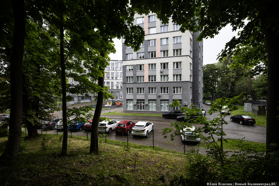 В ноябре 2024 года Гуськов получил ответ из министерства экономического развития, промышленности и торговли Калининградской области, в котором сообщалось, что в рассматриваемом районе образованы и поставлены на государственный кадастровый учет три земельных участка с кадастровыми номерами 39:15:132313:746, 39:15:132313:745 и 39:15:132313:511. Первый принадлежит собственникам уже построенного дома, второй имеет вид разрешенного использования «под строительство многоквартирного многоэтажного жилого здания со встроенными административными помещениями и автостоянкой не более 12 этажей, и высотой не более 40 метров», находится в собственности Российской Федерации, но сдан в аренду до середины апреля 2057 года. А третий, имеющий категорию «Парки культуры и отдыха», находится в частной собственности.