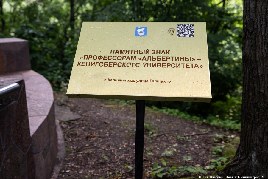 В 2014 году рядом с кладбищем по инициативе писателя Бориса Бартфельда был установлен памятный знак «„Профессорам Альбертины“ — Кёнигсбергского университета». В 2018-м одна из его частей обвалилась — то ли качество оказалось не очень, то ли кто-то хорошо постарался. Как бы то ни было, памятник восстановили. Однако через год на нем появились трещины и сколы. Пришлось снова проводить восстановительные работы.