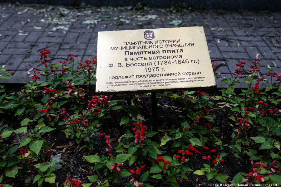 Бронзовый бюст знаменитого математика и астронома Фридриха Вильгельма Бесселя работы немецкого скульптора Фридриха Ройша был установлен в 1884 году рядом со знаменитой обсерваторией на холме у пересечения современных улиц Бесселя и Галицкого. В годы Второй Мировой войны обсерватория, открывшаяся в 1813 году, была сильно разрушена, но в целом устояла. В послевоенные годы в ней разместили керосиновую лавку, но потом здание все же снесли. Случилось это, как сообщает краеведческий портал prussia39.ru, «не позже 1956 года». Бюст, установленный в конце ХIХ века, исчез гораздо раньше. В Государственном архиве Калининградский области никаких документов на сей счет пока не найдено. Зато обнаружены упоминания о постаменте для бюста — самое раннее датировано 20 мая 1954 года.