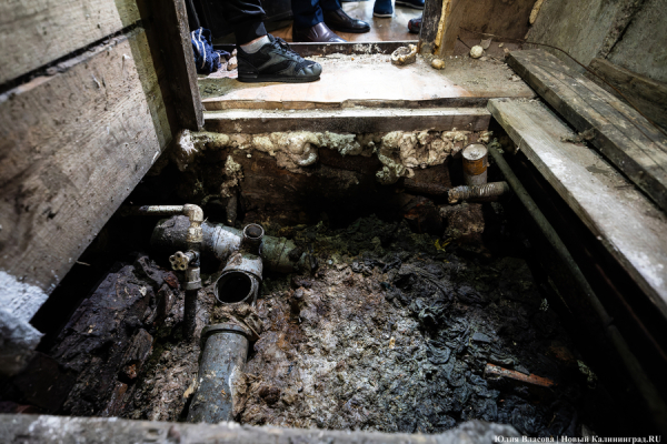 По словам Анастасии, управляющая компания провела обследование дома, и оно показало, что его износ составляет 84%. «Например, система канализации находится в крайне бедственном положении. А моя квартира на первом этаже как раз соседствует с одним из технических подвалов и из-за ветхости труб, что там проходят. Можно сказать, что сегодня все соседи гадят мне под дверь! Из дырявых сетей зловонные массы регулярно вытекают и в подпол в общем коридоре, и под мою квартиру. Дом просто разваливается изнутри. Постоянная влага тянет за собой плесень. Я только в минувшем мае сделала ремонт, а обои уже отваливаются. Чернота появляется снова, хотя я жестко в течение многих дней все обрабатывала спецсредствами и пропитками. Но прошло три месяца калининградского лета, и все вылезло по новой».
