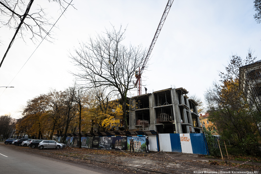 По данным Единого государственного реестра недвижимости, земельный участок по проспекту Победы, 8, с кадастровым номером 39:15:111008:477 площадью 837 кв. м принадлежал Наталье Мазилкиной. Ей же принадлежал на праве собственности двухэтажный деревянный жилой дом довоенной постройки площадью 129,4 кв. м с кадастровым номером 39:15:111008:39, располагавшийся ранее на этой территории. Право собственности на дом было зарегистрировано в августе 2022 года, его снесли осенью 2024 года.
