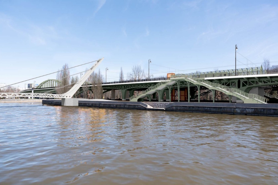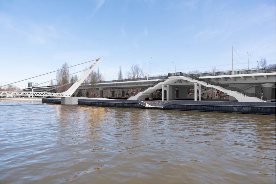 В конечном итоге власти под давлением архитекторов пришли к следующему выводу: «необходимо уделить внимание внешнему облику» и визуально разделить мост на три части, чтобы «разобраться с монотонностью и масштабом конструкции». Кроме того, проектировщику дали задание соорудить в центре моста (над островом Канта) остановочный павильон для трамвая.