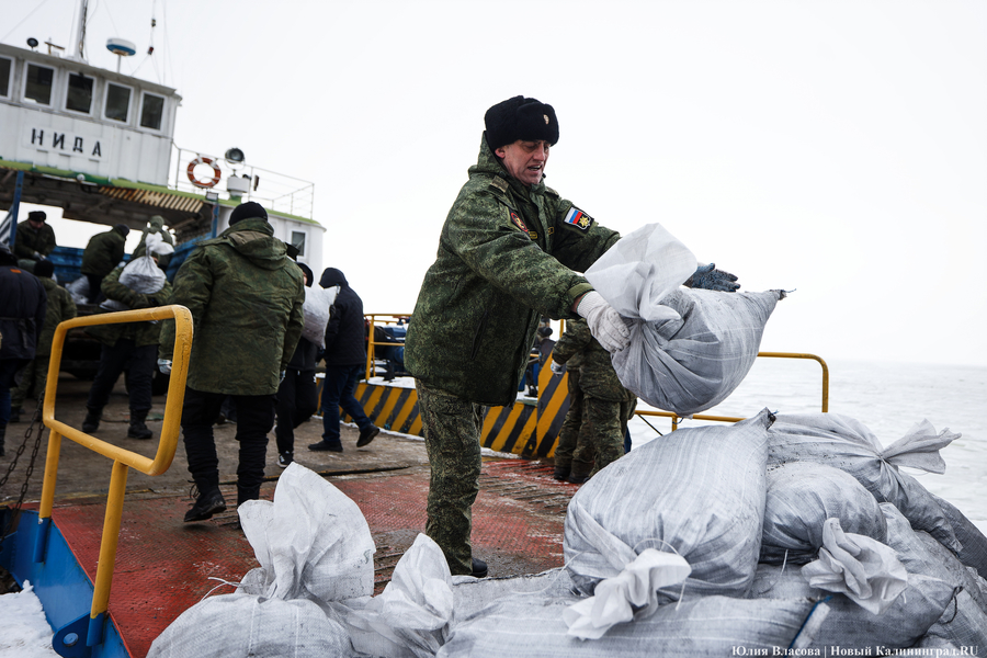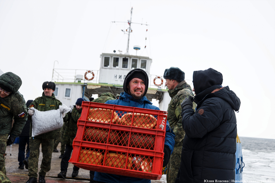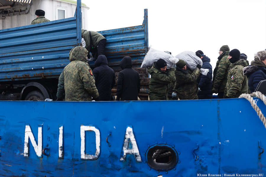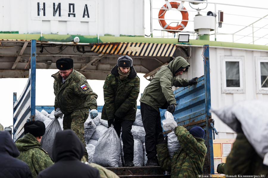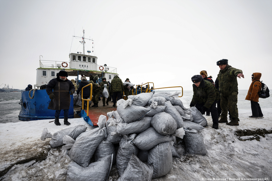 К полудню мороз усилился. С моря дуло ледяным ветром. От мысли, что паром придет только в пять часов, становилось не по себе. Но, к счастью, корреспондентам «Нового Калининграда» не пришлось мерзнуть до вечера. Выручил дополнительный паром, который пришел в час дня и привез четыре тонны угля в мешках.