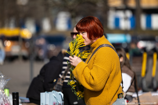 Калининград традиционно на 8 марта накрыл цветочный ажиотаж. Продавцы тюльпанов и мимоз перегородили самодельными цветочными витринами все центральные улицы, превратив город в один большой цветочный базар. Первые продавцы заняли позиции еще с семи утра, а с восьми они начали бойкую торговлю (из желающих сделать утренний сюрприз были очереди).