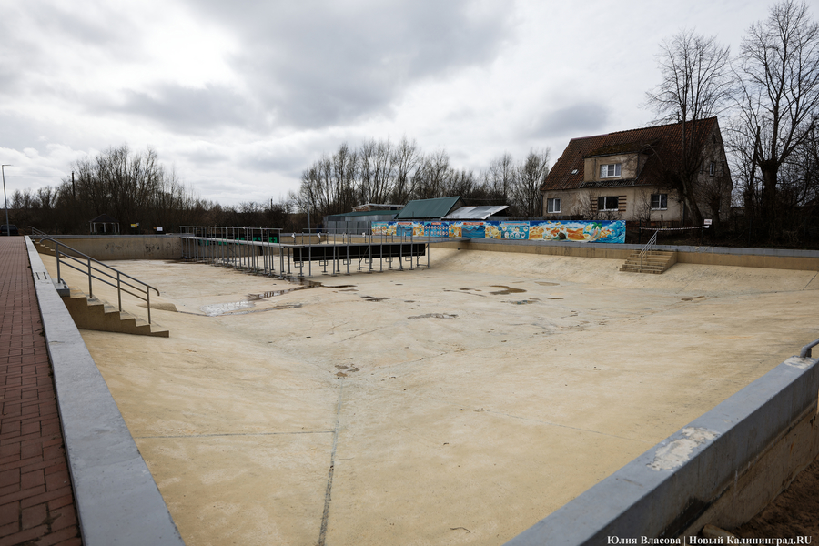 Возвращаясь к теме бассейна, хочется обратить внимание на то, что он в Славске всё же есть. Это открытый бассейн с минеральной водой. Появился этот объект, как утверждает краевед, хранитель местного музея Вячеслав Кенть, почти случайно. «Началось все в начале прошлого века со строительства в бывшем Хайнрихсвальде (так в довоенные времена назывался Славск — прим. „Нового Калининграда“) завода, где из торфа выделяли газ, — рассказывает он. — Пробурили скважину, и из неё совершенно неожиданно начал бить большой фонтан — метров, наверное, в 25 высотой. Поначалу подумали, что все это быстро закончится, но не тут-то было. Фонтан бил и бил. Вызвали специалистов из Кёнигсберга, они затампонировали скважину, часть воды отвели на завод, потому что вода была необходима в технологическом цикле, а часть — слили в низкое место. В результате образовалось что-то вроде пруда. Позже, в 1930-е годы, появилась идея построить здесь стадион, но потом, когда выяснилось, что вода в пруду не простая, а минеральная, решено было использовать выделенные на него деньги для обустройства бассейна. Его длина — 56 метров, ширина — 28. Глубина раньше была три метра, сейчас, после реконструкции, чуть меньше».