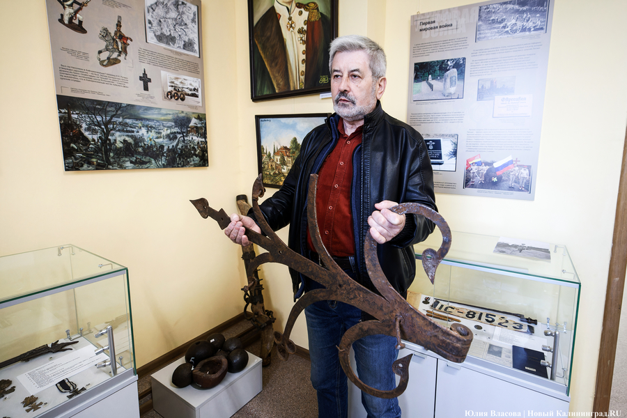 Гордостью славского музея является полуторавековой станок для выделки шкур. «Как-то раз, лет, наверное, десять назад к нам пришла бабушка из деревни, увидела деревянную ступу, которая у нас выставляется, и сказала, что у нее есть такая же, только в несколько раз больше, — рассказывает Кенть. — Я обрадовался, поехал к ней, увидел эту ступу — она действительно была огромной — дотронулся до нее, и она развалилась у меня в руках. Расстроился, конечно, жутко. В качестве утешения бабушка сказала, что у неё на чердаке есть старинный станок для выделки кож. Тоже уникальная в своем роде вещь. Этот станок — единственный в Калининградской области».