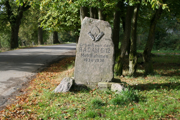 Историческая справка. Камень был установлен в честь одного из подразделений Имперской службы труда (RAD, Reichsarbeitsdienst), созданной в июне 1935 года (то есть после прихода к власти нацистов) для смягчения последствий безработицы для немецкой экономики. Организация являлась официальной государственной трудовой службой, в которой до Второй мировой войны служили мужчины в возрасте от 18 до 25 лет (в течение шести месяцев до начала военной службы). С началом Второй мировой войны в RAD служили и женщины, а организация стала вспомогательным формированием вермахта.