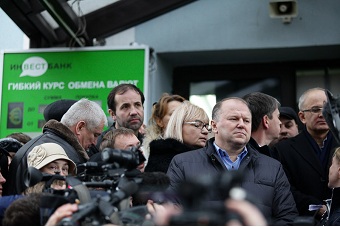 Напомним, ранее на ступенях главного офиса "Инвестбанка" губернатор заявлял вкладчикам, что может «только извиниться перед ними». Вкладчики в свою очередь требовали отставки Цуканова.