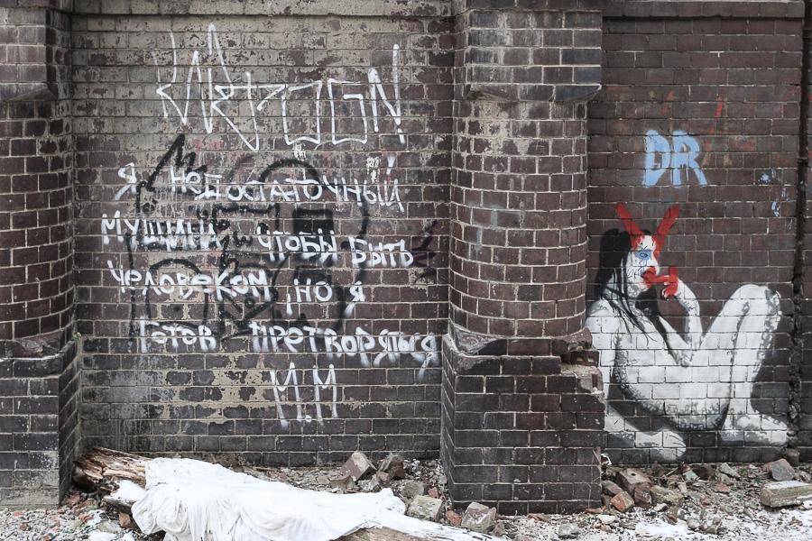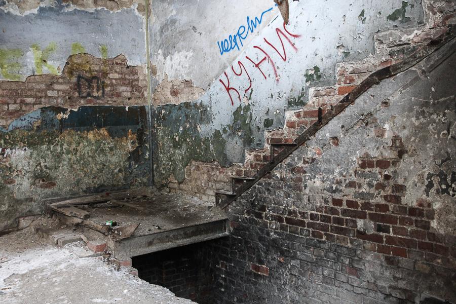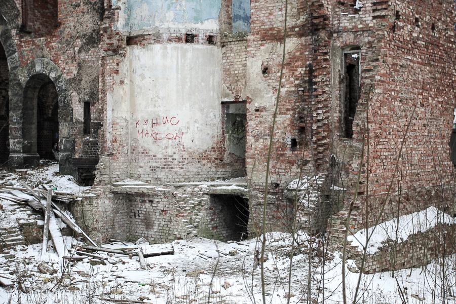 Остов здания без крыши и части стен, но некоторые внутренние помещения еще сохранились. То, как они используются, сейчас вполне очевидно: об этом красноречиво говорят пустые бутылки, большинство из которых скрыто снегом. Стены исписаны похабными и не очень надписями — типичная судьба заброшенного дома. Необычный рисунок на одной из стен привлекает внимание. Он схож с фантасмагорическими росписями, сделанными неизвестным автором на вилле «Яффа». Возможно, изображения сделал один и тот же мастер.