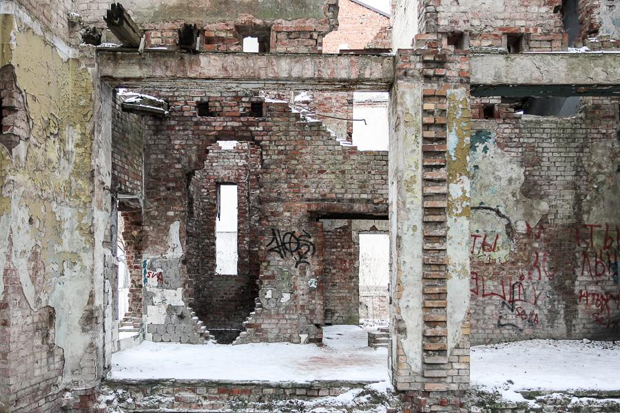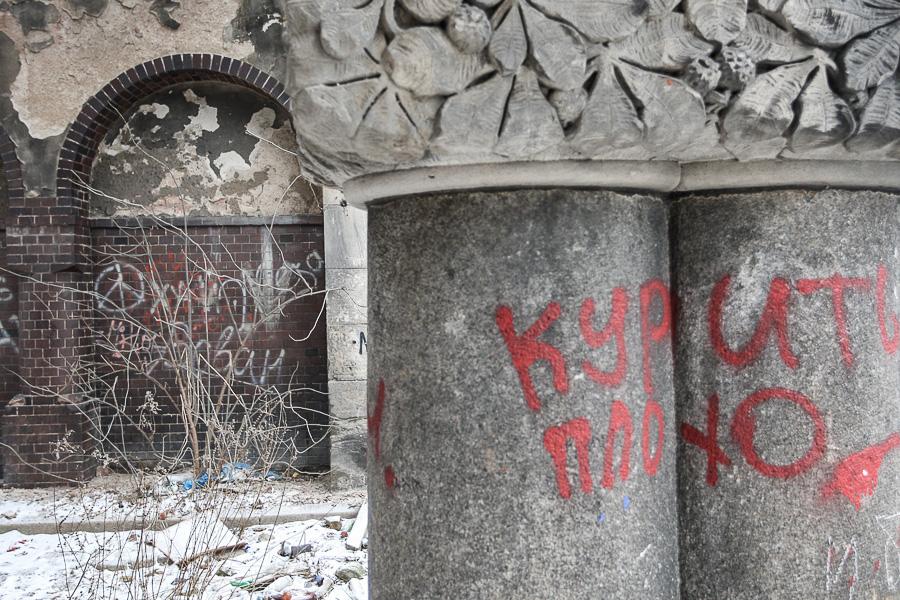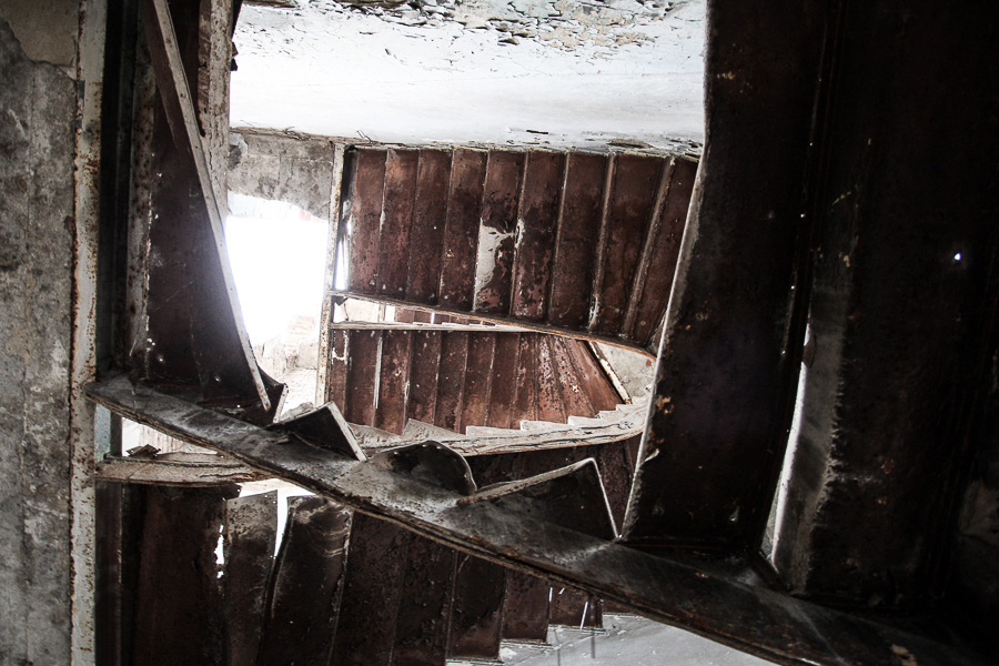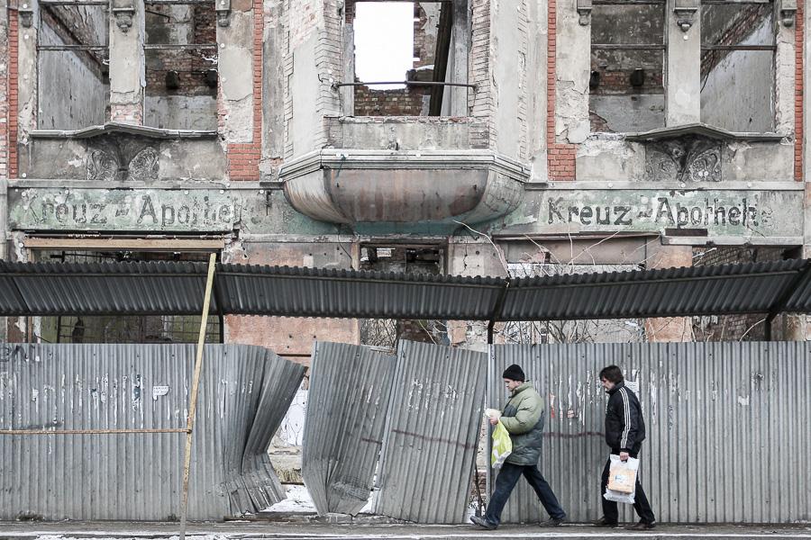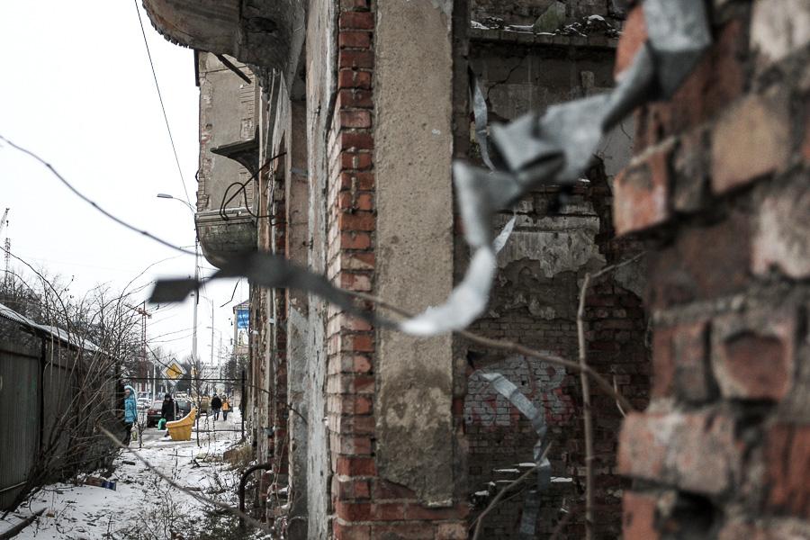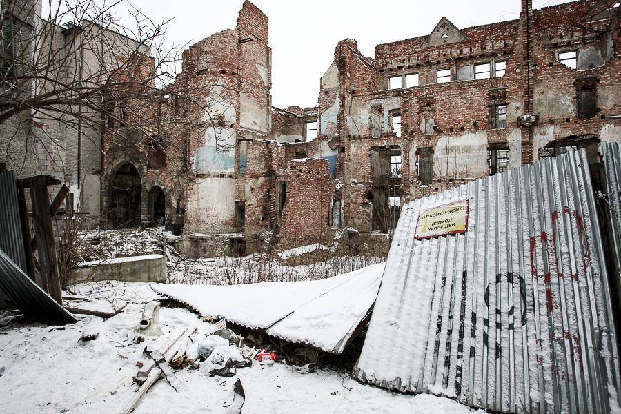 Практически руины здания, отгороженные от прохожих покосившимися железными листами, могли бы стать отличной иллюстрацией к популярному недавно тегу «безысходность». Это яркий пример естественного разрушения строения, которое длится уже около 27 лет. Дом, выстоявший во время войны, сегодня выглядит так, будто бомбу на него сбросили только вчера.