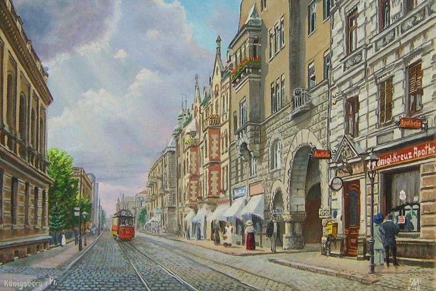 «Кройц-аптека» находилась на Konigstrasse — Королевской улице. Которая считалась одной из самых красивых в довоенном Кёнигсберге, а недвижимость в этом районе, само собой, была весьма престижной. По официальным данным, здание построено после 1900 года. Но есть и другая версия, согласно которой «Кройц-аптеку» возвели в 1888 году.