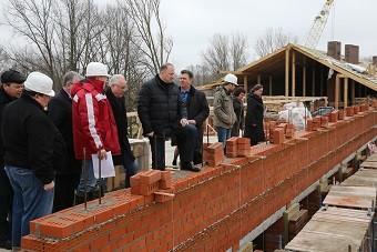 Едва поспевавшие за размашистым шагом регионального главы чиновники местной администрации вводили прессу в курс строительных подробностей. Отставание от графика работ, пояснили они, сейчас составляет около 22 дней. Причем конкурс по выбору подрядчика проводился дважды. Победившая в первом московская компания снизила цену на 50 млн, но на объект просто не вышла. «Они, во-первых, вовремя не приступили к своим обязанностям, мы обратились в правительство Калининградской области, и нам посоветовали с ними разорвать контракт, — пояснил замглавы администрации Олег Попкович, — Но мы по-доброму разошлись, без всяких, так скажем, штрафных санкций, без судов». «Просто они рассчитывали здесь, наверное, каких-нибудь субподрядчиков найти себе. Но у нас довольно сложно со строительными организациями. Поэтому испугались москвичи», — добавил начальник отдела капитального строительства Александр Машканцев.